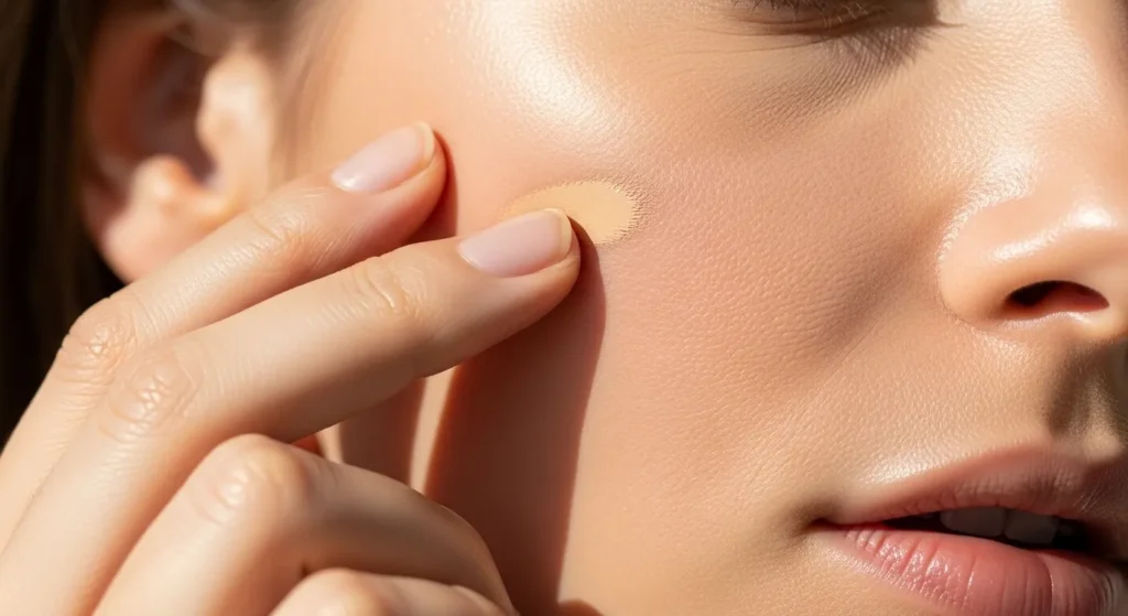 コンシーラーの後にフェイスパウダーを軽くのせると、ヨレを防ぎカバー力が持続しやすくなります。パフで押さえるように軽くのせ、ブラシで余分な粉を払うと自然に仕上がります。マットすぎると厚塗り感が出るため、微細なパールが入ったルースパウダーを選ぶとツヤ感を残しながらカバーできます。パウダーもノンコメドジェニック処方のものを選ぶとより安心です。